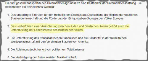 “Para nós, este comprometimento a Israel não é meramente parte de nosso contrato de trabalho”. Este pequeno país é “a única democracia do Oriente Médio”. Israel defende os valores e segurança da Europa: “Por isso nós aqui do Ocidente devemos agradecer Israel. Todos os dias.”