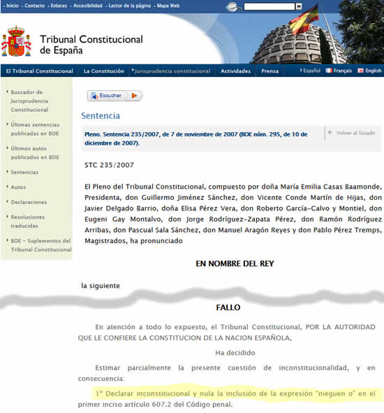 Jurisprudência da inconstitucionalidade em punir a negação do Holocausto judeu, publicada pelo Tribunal Constitucional da espanha: www.tribunalconstitucional.es: